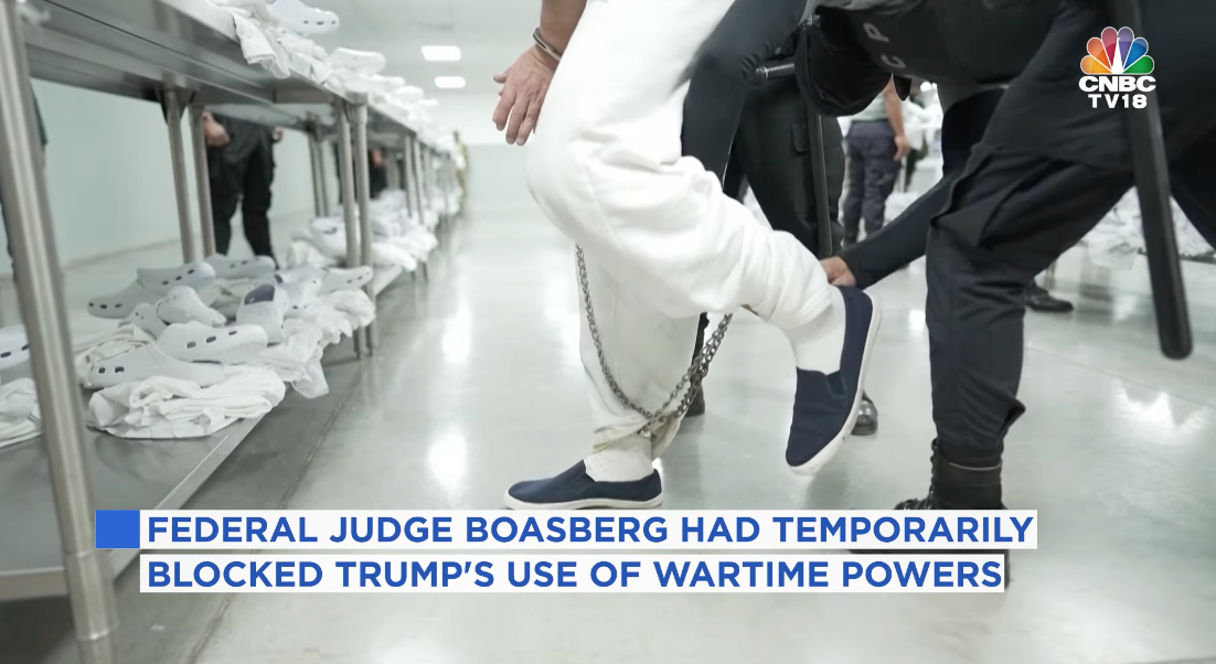 Foto. Da un video di CNBC. L'amministrazione Trump deporta dagli Stati Uniti presunti membri di una gang venezuelana, nonostante un ordine del tribunale glielo proibiva